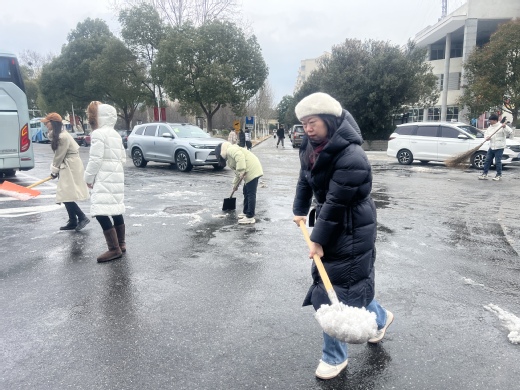 龙年初至,一场大雪把校园变得银装素裹、分外妖娆,但突发的雨雪冰冻天气,也给师生员工的出行带来极大不便。下雪就是命令,见雪就要行动。2月23日,教职工报道第一天,公司王明艳党支部全体党员迅速行动起来,在公司党总支领导下,开展扫雪护路行动,最大程度保障师生校内出行安全。