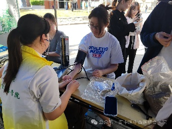 1.测量血压——公司志愿者为每位到来的南农同学们耐心测量了血压,并介绍了血压知识,结合现场同学们的血压情况,给出相关饮食和运动方面的建议。