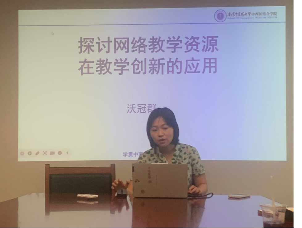 最后,中西医结合外科教研室沃冠群老师以“探讨网络教学资源在教学创新的应用”为主题进行讲解,分享了个人授课时面临的问题以及自身如何缩小差距快速提升的方法,并以雨课堂为例,探讨在雨课堂使用过程中发现的教学问题以及如何辅佐教学设计。