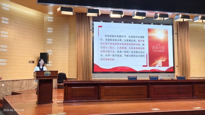 6月29日上午,中西医结合公司党总支在丰盛报告厅开展“严肃党风党纪,创优良师风学风”党纪学习教育专题党课,公司党总支书记蒋燕主讲,全体教师党员、员工党员代表参会。