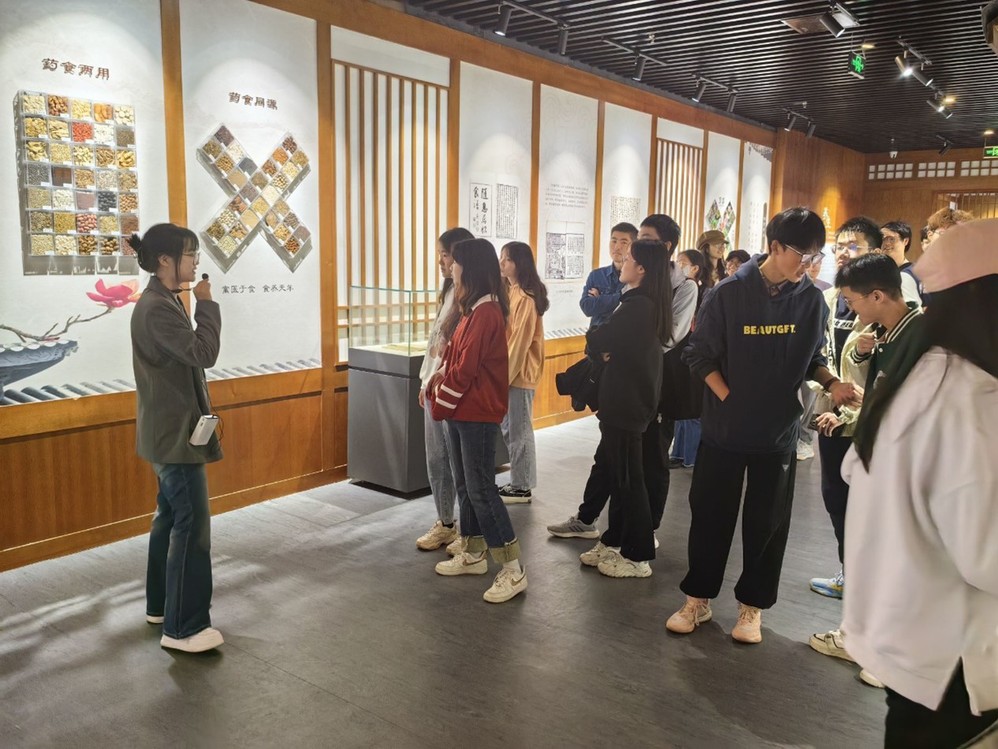 最后,在学长的带领下,同学们走进了江苏省中医药博物馆,带领同学们学习校史和中草药文化,在课堂上学长讲的生动形象的知识基础下,配合上博物馆内丰富的展品,同学们不仅对中草药文化有了更深的理解,也对这方面课程的学习兴趣进一步高涨。