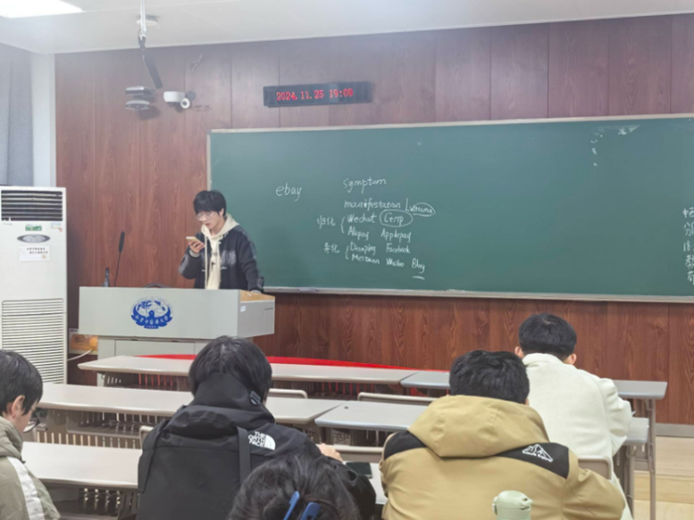 课程的后半部分,李俊雨同学从劳动教育活动规范出发,详细介绍了劳动实践活动的分类、策划要求、评级、学分发放标准以及审核标准。随后,李同学结合活动申请的完整流程实例进行了细致的讲解,从而让在场的同学们对素质拓展第二课堂上的劳动实践部分有了更加透彻的认识。