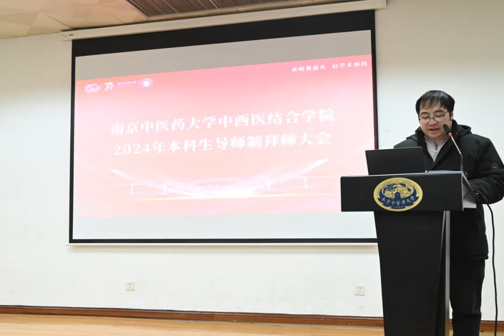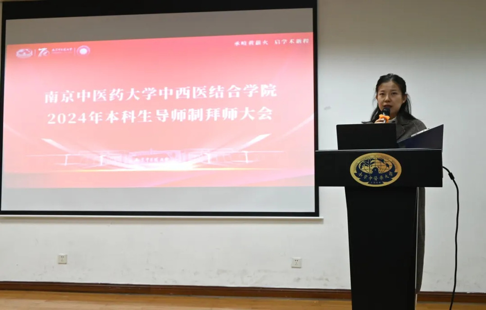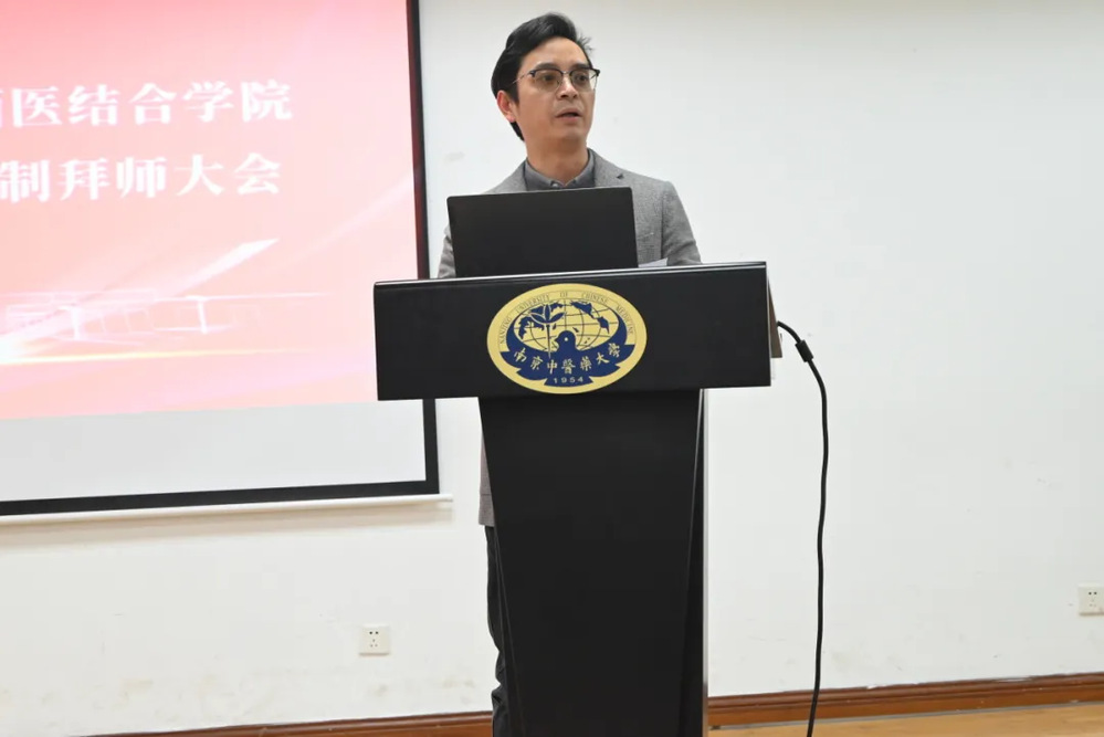 2024级中西医临床医学(本博贯通培养)专业的本导代表韩暄副教授回顾了自己本科时期在导师指导下的成长经历。从基础诊疗知识到临床思维能力的养成,她深刻体会到师承在医学成长中的关键作用。她表示,作为本导导师,深感责任重大,将持续关注最新科研进展,与员工在教学与研究中共同成长。韩教授寄语员工,希望他们不断激发内驱力,志存高远,通过不懈学习与实践,成长为具有扎实医学基础与创新能力的中西医结合人才。
