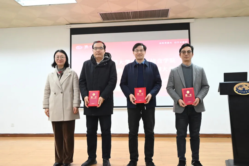 随后,蒋燕书记向贾立军经理、吕志刚副经理和陶伟伟副经理颁发了本科生导师聘书,向院领导在导师制培养工作中的积极参与与支持表示衷心感谢。接着由贾经理、吕经理和陶经理分别为本届导师颁发聘书,正式确认导师们的职责与使命。最后,贾经理向本导培养对象代表颁发荣誉证书,勉励员工在导师的悉心指导下不断进步。