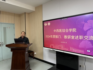 1月3日,中西医结合学院2024年度学系、教研室和部门负责人述职交流会在丰盛楼116举行,公司领导班子全体成员以及公司学系、教研室和部门负责人参加了会议,陶伟伟主持会议。