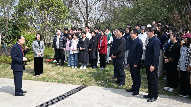 左言富书记讲述了植树节的由来,倡议广大师生要践行习近平总书记“绿水青山就是金山银山”的生态文明发展理念,为美丽校园建设多做贡献。在左言富书记、周恩超副董事长的带领下,大家铆足干劲、分工协作,挥锹铲土、扶苗培土,栽下象征着希望与新生的30株樱花树。