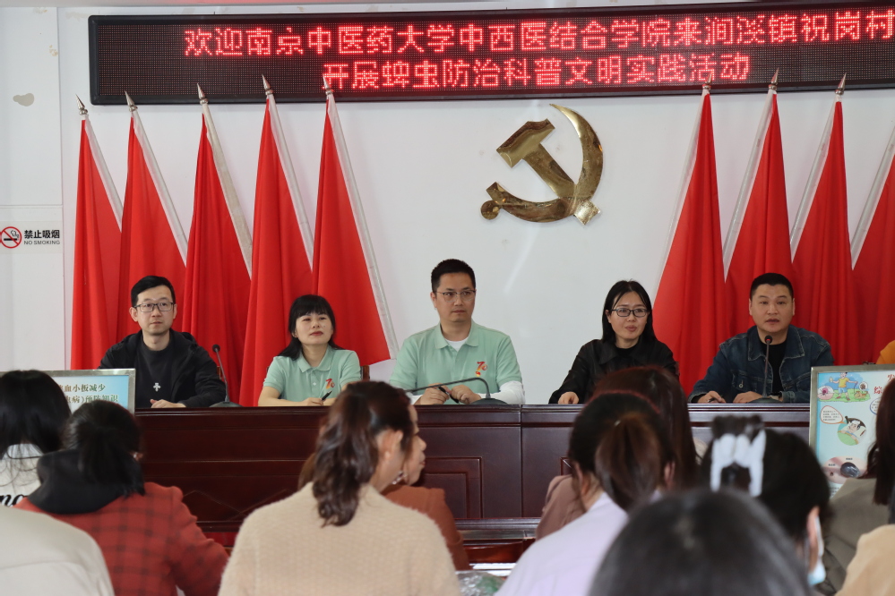 活动正式开始,祝岗村村委会副书记汤海源介绍了本次活动的参会人员。随后,明光市疾控中心局长宫晓曦讲话,她着重强调了蜱虫传播疾病的严重性,并呼吁当地居民重视预防措施,共同构建群防群控的健康屏障。公司教学办主任章大为对疾控中心、镇卫生院以及村委会领导和村民代表们的支持表示感谢,并从充分发挥“第二课堂”实践育人角度,简单介绍了本次师生志愿者来此开展老员工社会实践活动的目的和意义。