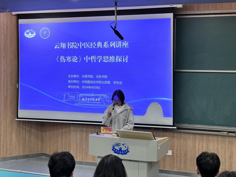 4月9日下午,bevictor伟德官网云翔书院联合淡安书院特邀公司中医公司伤寒教研室马俊杰副教授举办《解码〈伤寒论〉哲学密码》专题讲座,围绕中医辩证思维与经典方剂应用展开深入探讨。帮助同学们理解中医哲学思想在临床与方剂中的实际应用,提升辩证思维能力,推动中医文化的传承与创新。讲座由中西医临床医学243班张一诺主持。