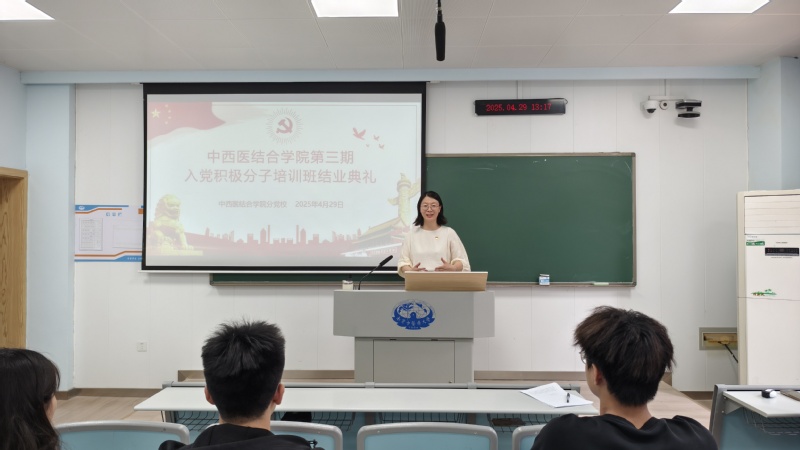 典礼在慷慨激昂的《义勇军进行曲》中拉开序幕。马小伟老师作培训班工作总结。本期培训班自4月9日开始,历时21天,累计完成43学时,培训内容涵盖:专题讲座、观影、参观、奉献,小组讨论等方面内容。通过系统培训,学员们进一步端正了入党动机,加深了对党的理论和政策的理解,增强了服务社会的责任感和使命感,达到了预期培训效果。