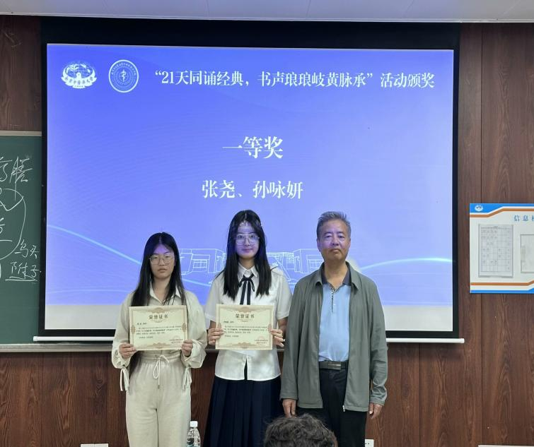 随后获奖同学代表分享了她们诵读中医经典的学习体会,表达了对中医药文化传承的坚定决心。
