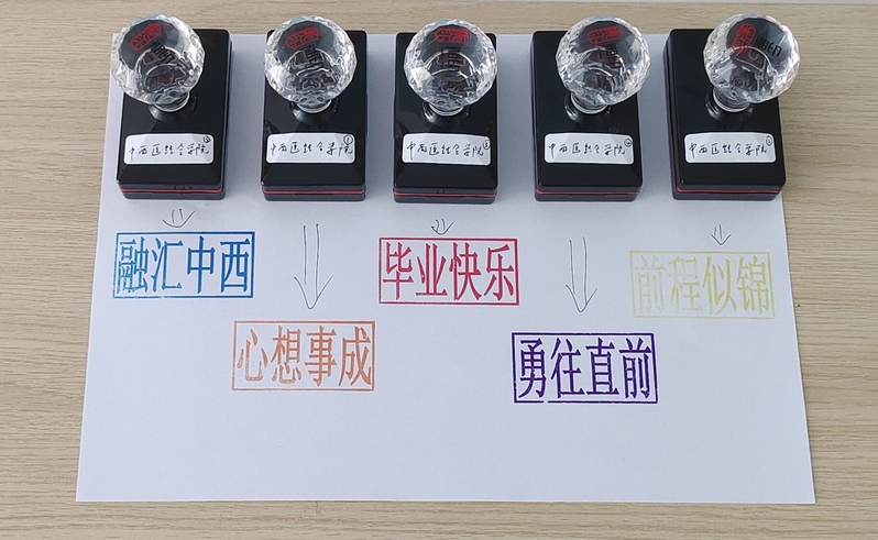 公司为毕业生准备了纪念水杯、明信片和公司纪念手袋。水杯印有院徽,希望毕业生饮水思源,不忘初心,明信片和手袋以校园风光为背景,饱含公司对于员工从入学后的学贯中西、至精至诚到毕业后的融汇中西、医济天下的期待。并设置了毕业打卡点和祝福印章,向2025届毕业生们送上诚挚的祝福。
