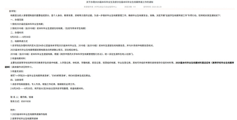6月初,在员工工作处的通知要求下,辅导员进行2025届本科毕业生去向核对。6月底,辅导员前往大活204办公室办理2025届本科毕业生及部分往届本科毕业生档案转递工作,辅导员认真查询本公司本科毕业生在校档案信息,并与91系统中档案信息逐一核对,根据《伟德中国官网本科员工档案管理暂行办法》和前期档案去向转递确认情况,确定档案材料派往生源所在地人社部门或相应单位。