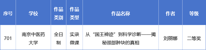近日,2025年江苏省高等公司微课教学比赛获奖名单公示结束。公司中西医结合临床系副主任刘丽娜教授的作品《从“国王神迹”到科学诊断——揭秘颈部肿块的真相》在此次比赛中表现优秀,荣获全日制组实录微课二等奖。