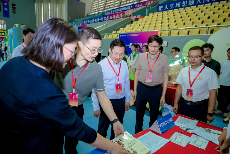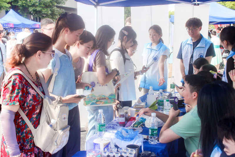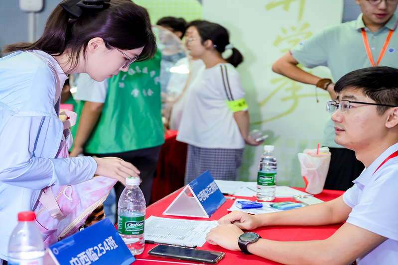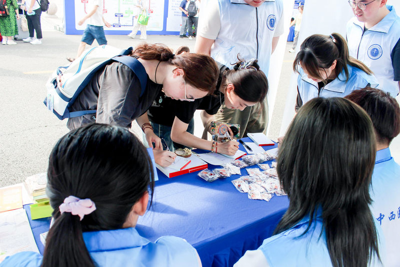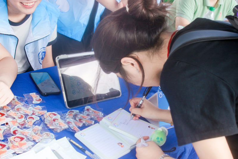 迎新展示区,公司安排了“医”路领航、杏林雅韵、仁心暖行三大主题板块。在“医”路领航板块,公司中西医结合临床系副主任刘丽娜,基础系副主任薛梅,经理助理、临床医学系副主任章轶立,基础教研室副主任成小兰等专家教师与新生面对面,细致解答课程规划、人才培养和职业发展等疑问,帮助学子明晰学业航向;杏林雅韵板块开展中医经典特色印章打卡、DIY创意纸扇与书签等活动,让新生感受中医之美;仁心暖行板块,“生命同伴”“一米阳光”“蜱盾护航”志愿服务团队向广大新生及家长介绍公司志愿公益项目,同时开展“阳光信箱”留言祝福、安宁疗护和蜱虫防护科普互动,让新生初入校园便浸润于志行天下、大爱无疆的氛围中。