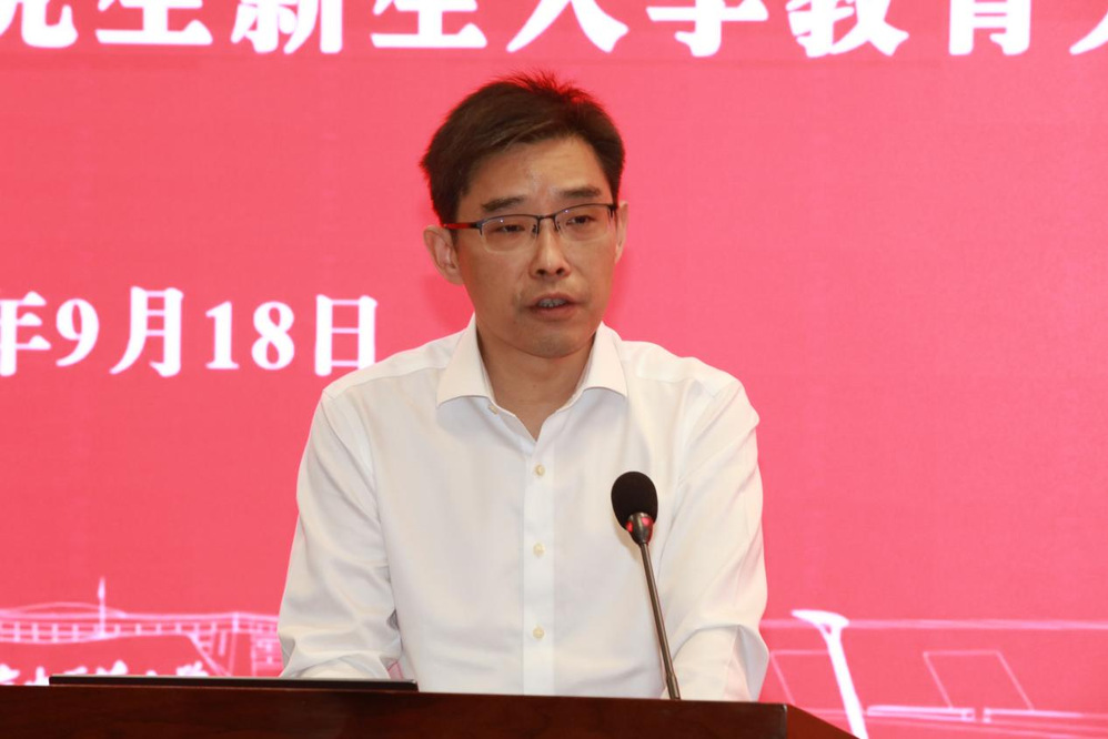 员工家长代表鲁邦军发言,他以员工和家长的双重身份,勉励新生坚定文化自信、夯实理论基础、保持学习韧劲、坚持守正创新、注重知行合一,同时做到自律、自立与感恩。并期待中西临学子立大志、求真知、练本领,将个人理想融入时代发展,书写无愧于青春的篇章。