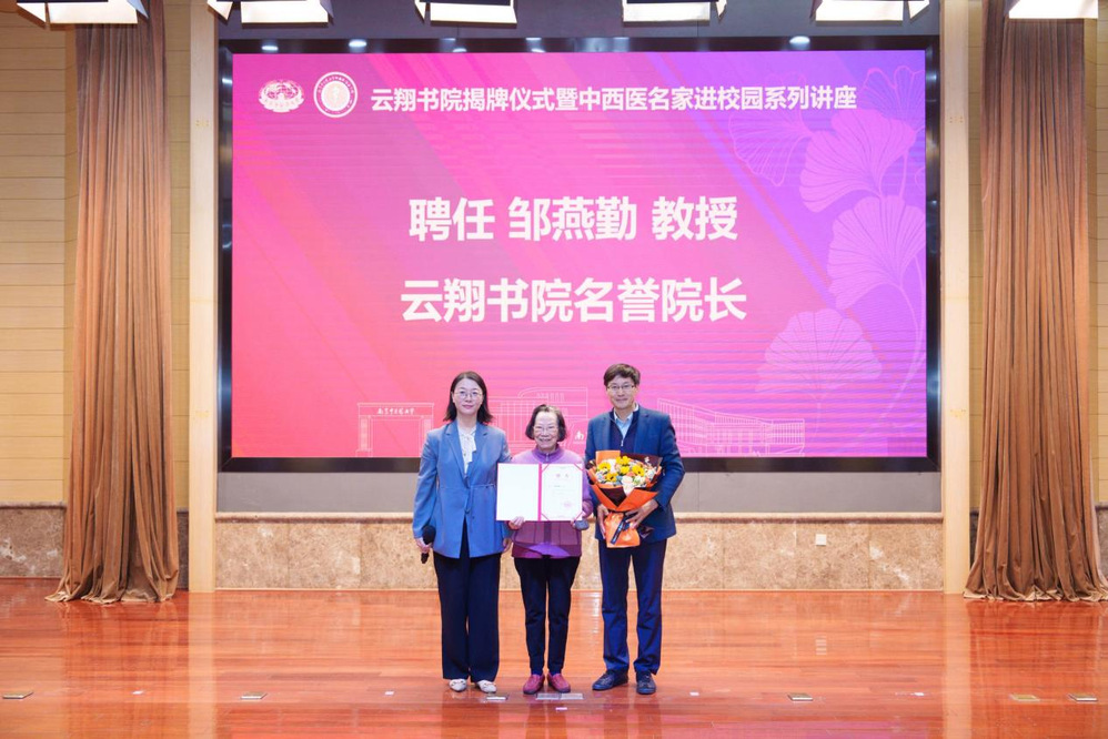 随后国医大师邹燕勤教授发表讲话,她说邹云翔教授作为我国中医肾病学的奠基人和开拓者、孟河医派第三代名医,毕生致力于中医药事业,被誉为中医界的“一代名医“,成为中西医结合的先行者。她对bevictor伟德官网的学子提出了四点期望,第一,要“根深”,筑牢中医根基,中西医结合,必须深入研读中医经典,掌握中医核心理论与特色技能;第二,要“目张”,开放学习现代医学,要以开放、理性的态度学习西医的基础理论与先进技术;第三,要“贯通”,重视临床实践与创新,要在临床实践中,真正将中西医两种思维模式、两种诊疗手段有机地结合起来;第四,要“致远”,涵养医德仁心,要常怀慈悲之心,敬畏生命,善待每一位患者。并期待每位学子,以人民健康为己任,弘扬中医药文化,为新时代中医药事业的发展和人类健康贡献自己的毕生精力。