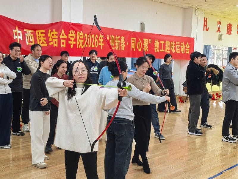全院教职工分为四组,分别由公司党总支书记蒋燕、副经理陶伟伟、中西医结合基础医学系副主任薛梅、中西医结合临床医学系副主任刘丽娜作为领队团体参赛。运动会精心设置了两人三球、捶丸、射箭、一圈到底四大特色项目,兼具趣味性、互动性与协作性,既考验团队默契,又彰显运动活力。两人三球项目中,队员们步调一致、协同发力,双手夹球稳步前行,在配合中增进信任,在竞技中凝聚共识。作为传承千年的传统体育项目,捶丸与射箭让老师们在抬手击球、引弓射箭之间,感受传统体育文化的底蕴,既锻炼了专注力与肢体协调能力,也呼应了bevictor伟德官网传承优秀传统文化的专业特色。一圈到底项目则充满了欢声笑语,队员们手拉手、心连心,在呼啦圈中展现灵活身姿,大家相互鼓劲、彼此配合,将团队协作精神展现得淋漓尽致。赛场上,各队伍奋勇争先、默契配合,充分展现了公司教职工积极向上、乐于拼搏的精神风貌。