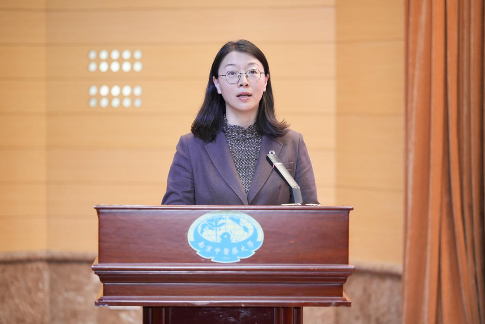 公司党总支书记蒋燕在大会上作为公司代表汇报分享公司就业工作经验方法。